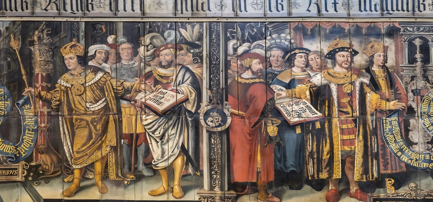Between around 1516 and 1520, Sherborne commissioned the artist Lambert Barnard to paint a remarkable series of panels in Chichester’s Cathedral. Barnard is the earliest known English painter to have worked extensively in oil, and the Chichester panels are among the most important survivals of early English Renaissance art. Sherborne’s commission was wide‑ranging: it included a striking image of Henry VIII himself, reinforcing loyalty to the Crown, alongside panels depicting the Bishops of Chichester and asserting continuity of episcopal authority.
